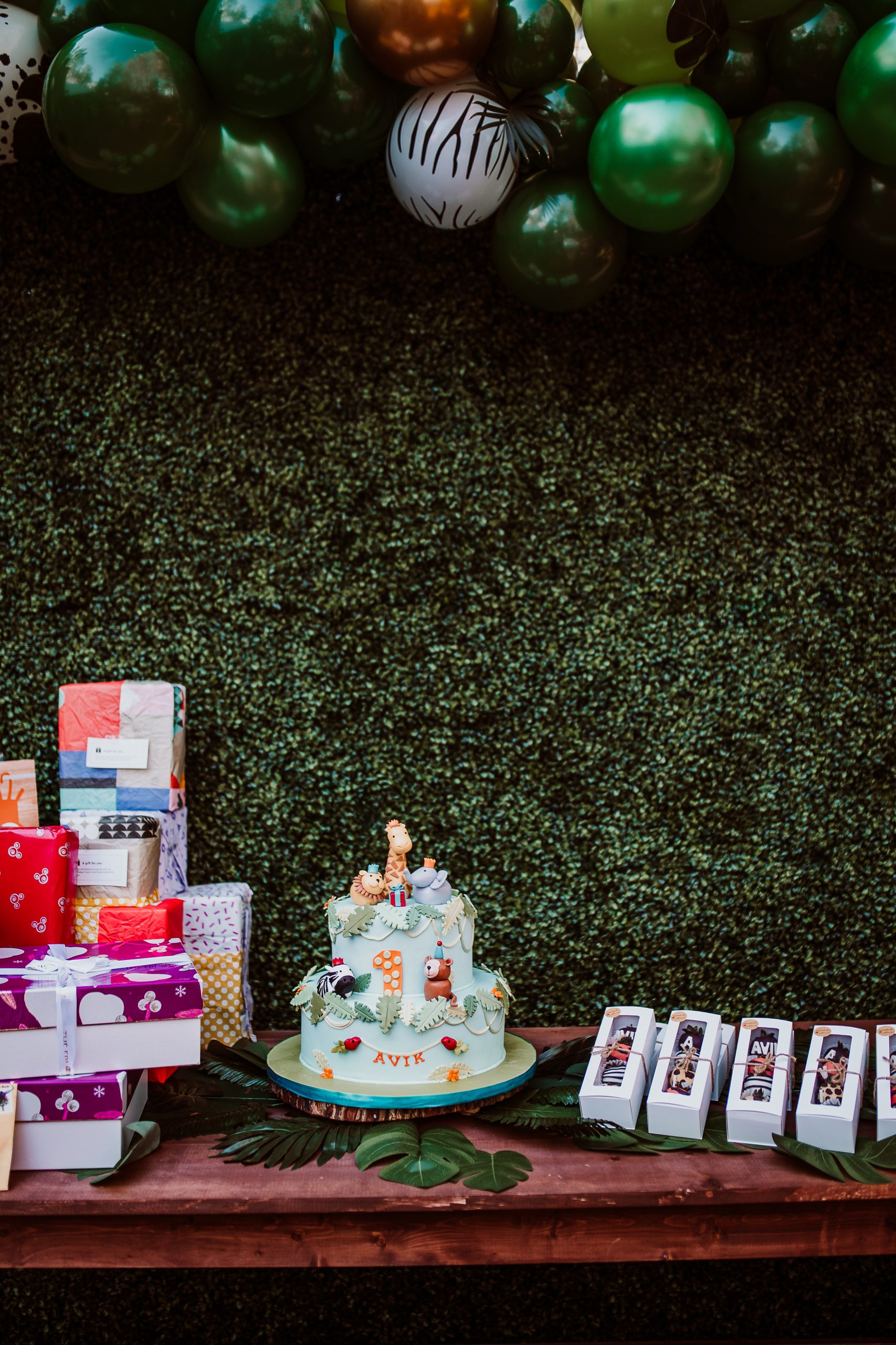 Anita and Ana worked with my vendors beautifully to create an Instagram-worthy backdrop with the marquee letters, balloon arches, and leafy green backdrop. I should also say that I had an Etsy vendor, Panhandle Mercantile, who made a wooden sign (“Avik’s Wild One”) to go on the backdrop. And of course, I cannot leave out Honeysuckle + Holly Photography whose artistic director, Christina, immortalized the entire party with candid photographs. As party favors as the family was heading out, we gave custom chocolate covered strawberries beautifully hand-dipped and decorated by Olena, owner of Bouquets of Strawberries in Agawam, MA.