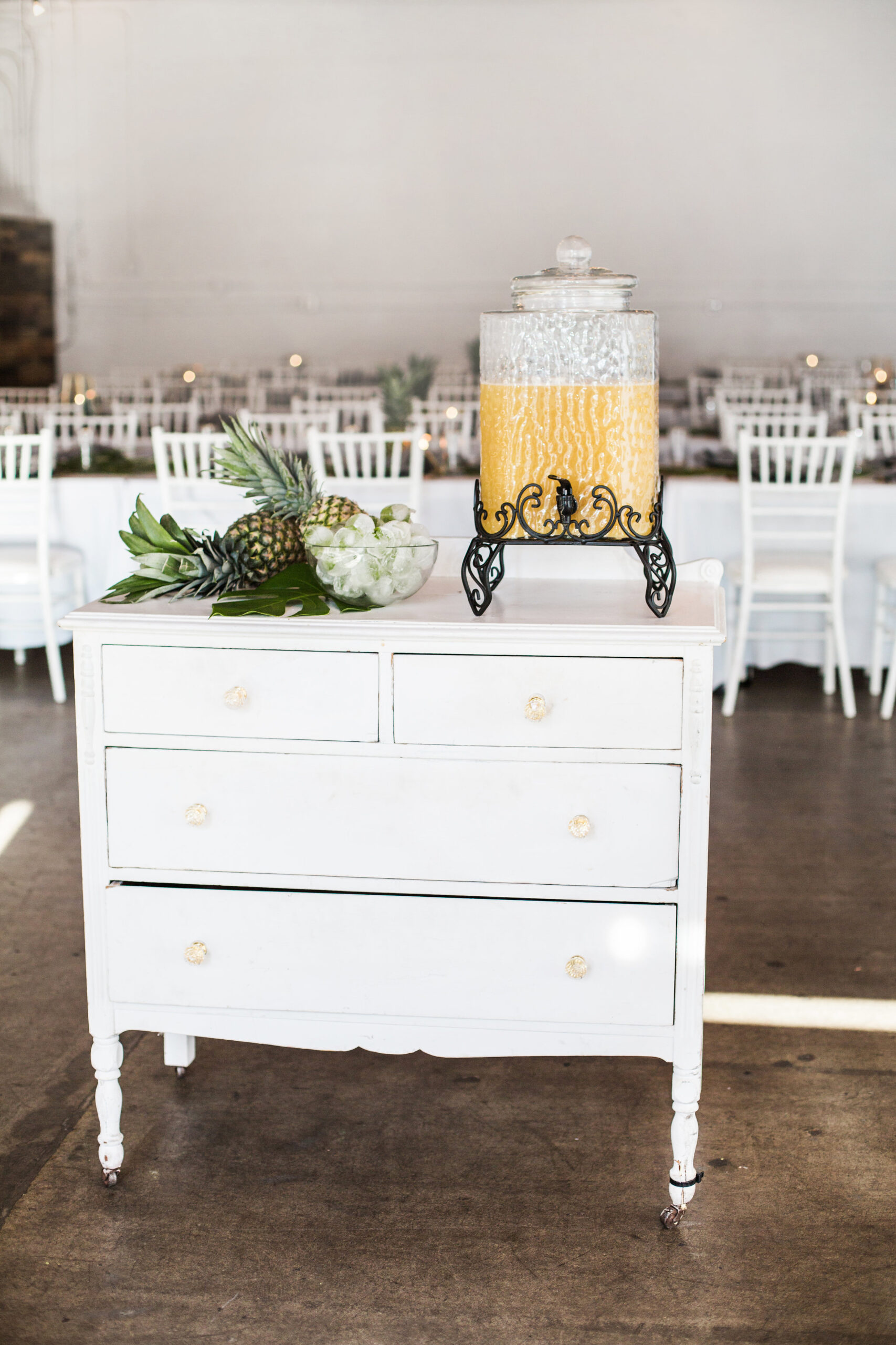 Alright let’s talk place cards! These minimalist and modern place cards were made by simply taking the glass from small picture frames. Search your local thrift stores for small photo frames and you can do the same. An alternative is purchasing acrylic cards. Ashley Baumgartner again did the calligraphy by hand and to give them a tropical touch the place cards were each placed on top of a blade of sword fern. tropical theme 30th birthday chic party ideas botanical modern centerpiece pineapple geometric placesetting tropical theme 30th birthday chic party ideas botanical modern centerpiece pineapple geometric placesetting