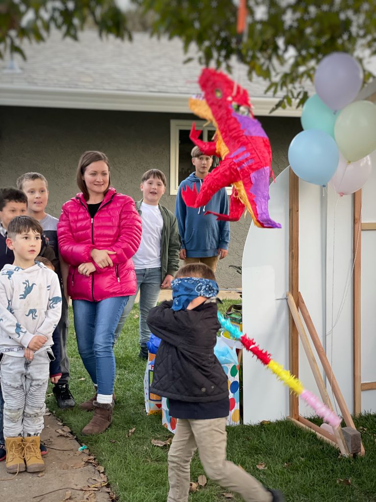 Oh and this is an absolute must… a DINOSAUR PINATA! Pinatas are loved by kids of all ages, even adults! It was so great to see my little 1 year old have fun and engage with this activity as well as the big kids up to 13. Seriously, you can never go wrong with a pinata at any kids birthday party.Â