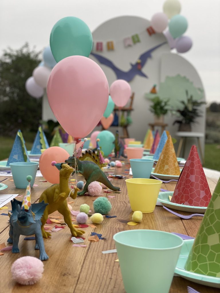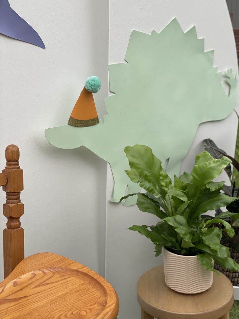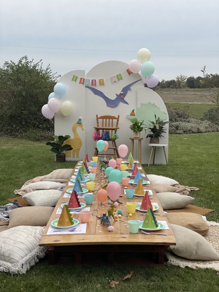 My essentials were booked and I couldn’t wait to purchase all the fun decorations! I shopped at my local Party City, Dollar Tree, Walmart and of course Amazon and Etsy to curate the perfect collection of pastel dinosaur party decor. The end result was perfect!Â