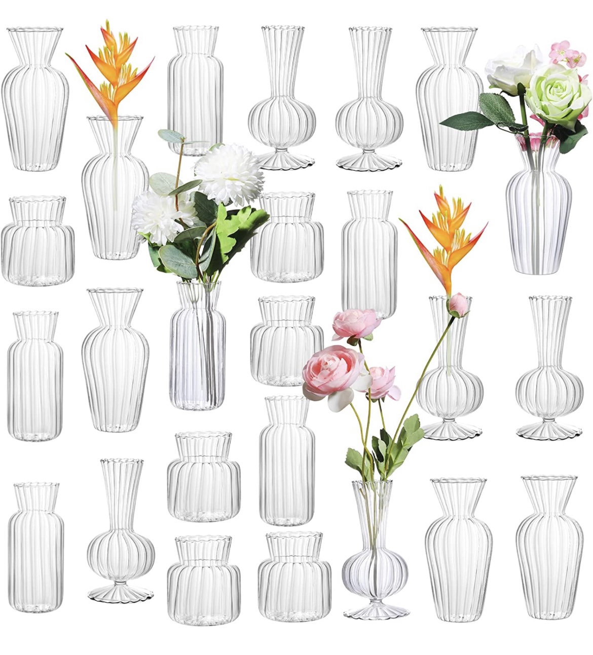 - Small and Delicate: there are different sizes of our bud vases, they are about 8 x 9 cm/ 3.15 x 3.54 inches, 5.5 x 13.5 cm/ 2.17 x 5.31 inches, 6.5 x 14.5 cm/ 2.56 x 5.71 inches and 5.5 x 14.5 cm/ 2.17 x 5.71 inches