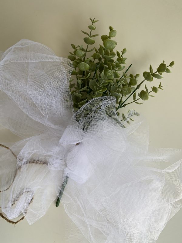 If you’re looking for a way to designate reserved seating and don’t want to increase your floral costs, these bundles of artificial greenery are a great option! The tulle fabric adds the perfect amount of elegance and the twine rope makes installation so easy.
