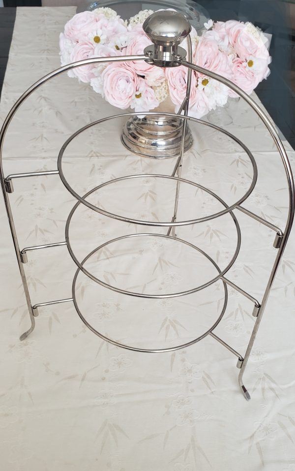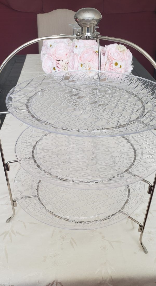 Available is a large 3 tier dessert / finger sandwich / fruit / cake stand