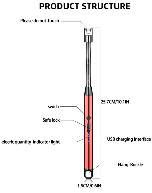 *Electric Arc Candle Lighter (Red) 12″L x 6″W x 6″H