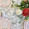 Rose bud table cloth adds a charming touch to any garden themed event! Table cloths are wrinkle free and waterproof. Dimensions are 84″ length x 55″ width, One table cloth fits perfectly on a 6 foot table. 6 tablecloths available total.