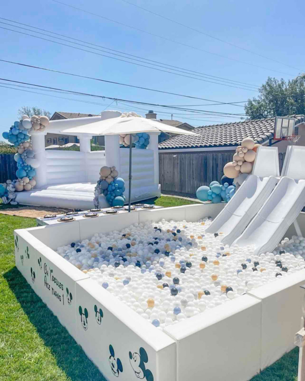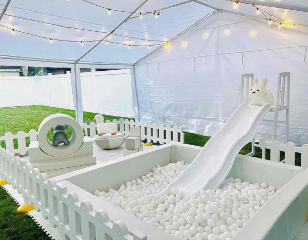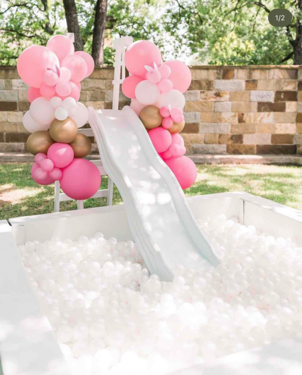 10×10 white ball pit & slide, 1-2 color choice of balls