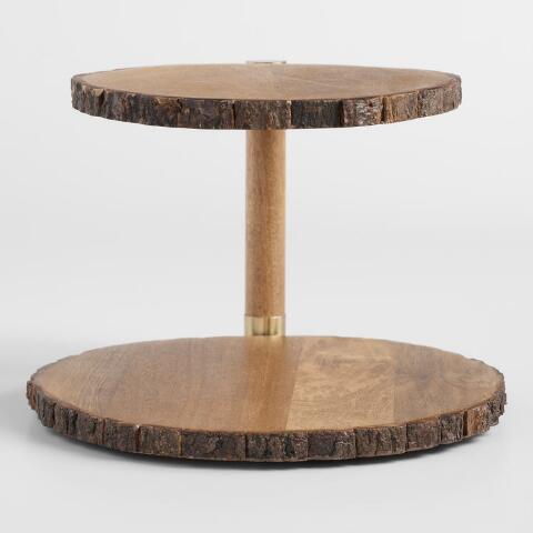 Wood Bark 2 Tier Serving Stand