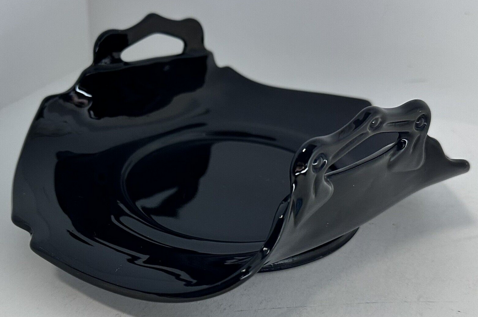 L.E. Smith Mt. Pleasant Depression Black Amethyst Rolled Edge Handle Bon Bon Plate