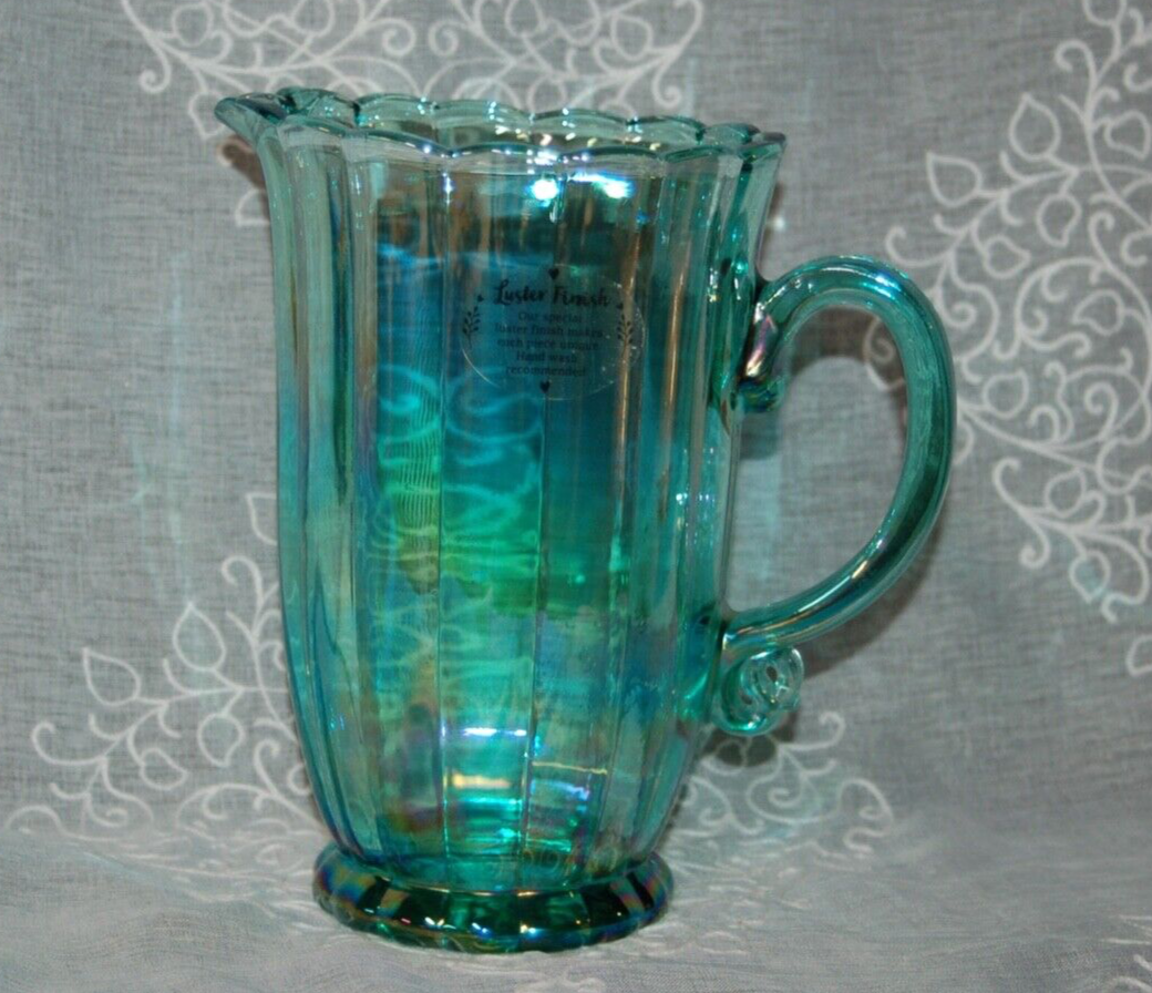 Iridescent Luster Blue/Green Water Pitcher 8.25″