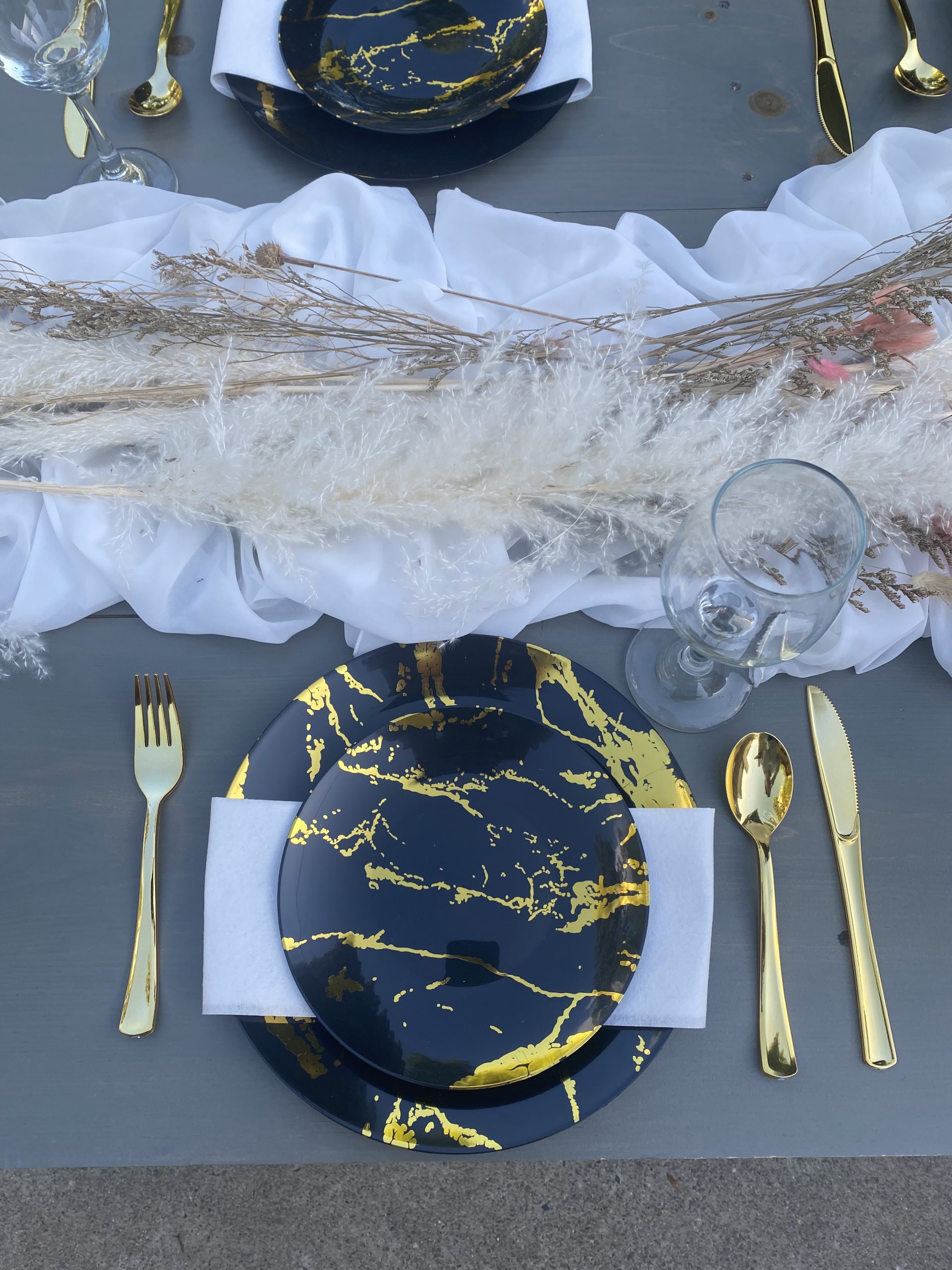 These wooden tables are hand crafted and painted, perfect for your next event.